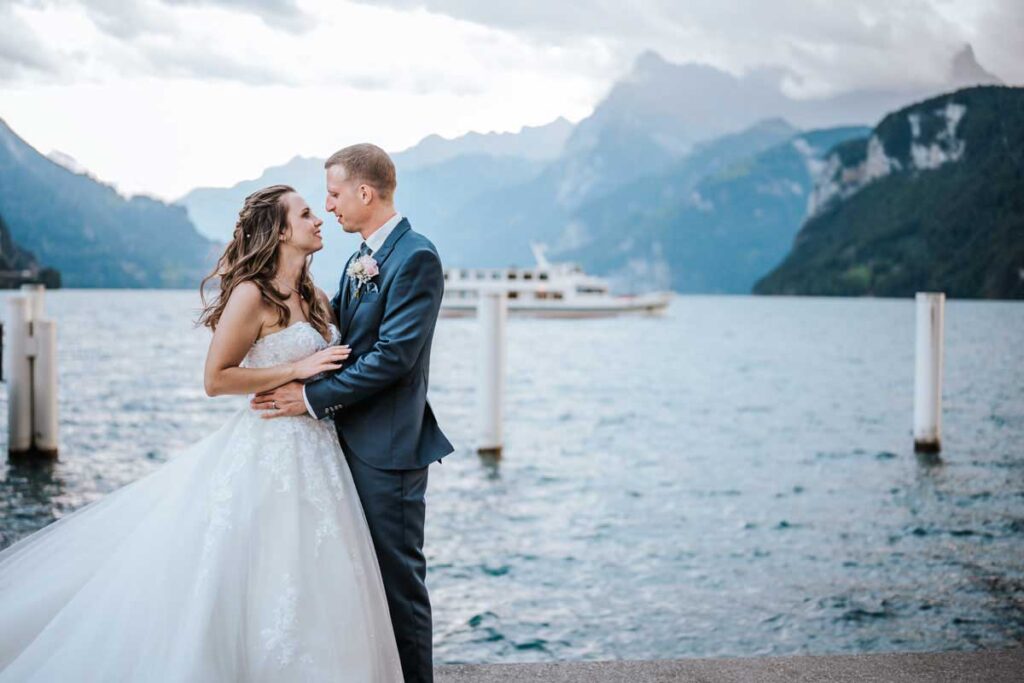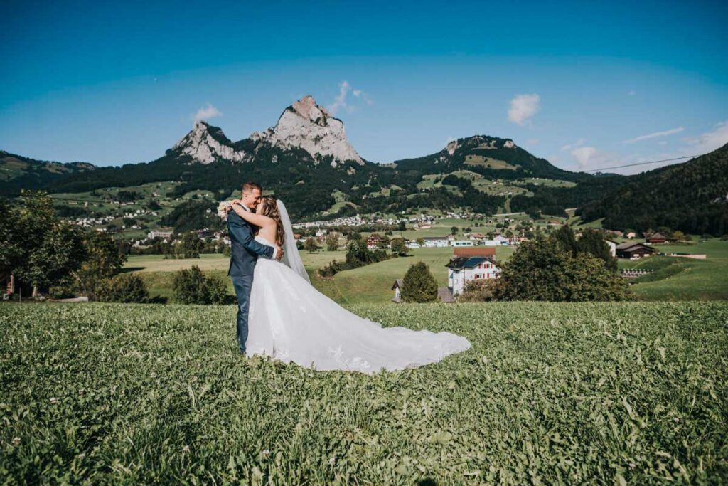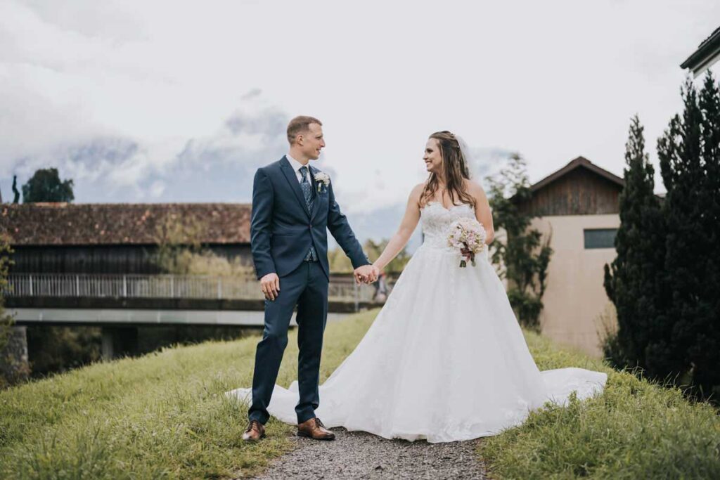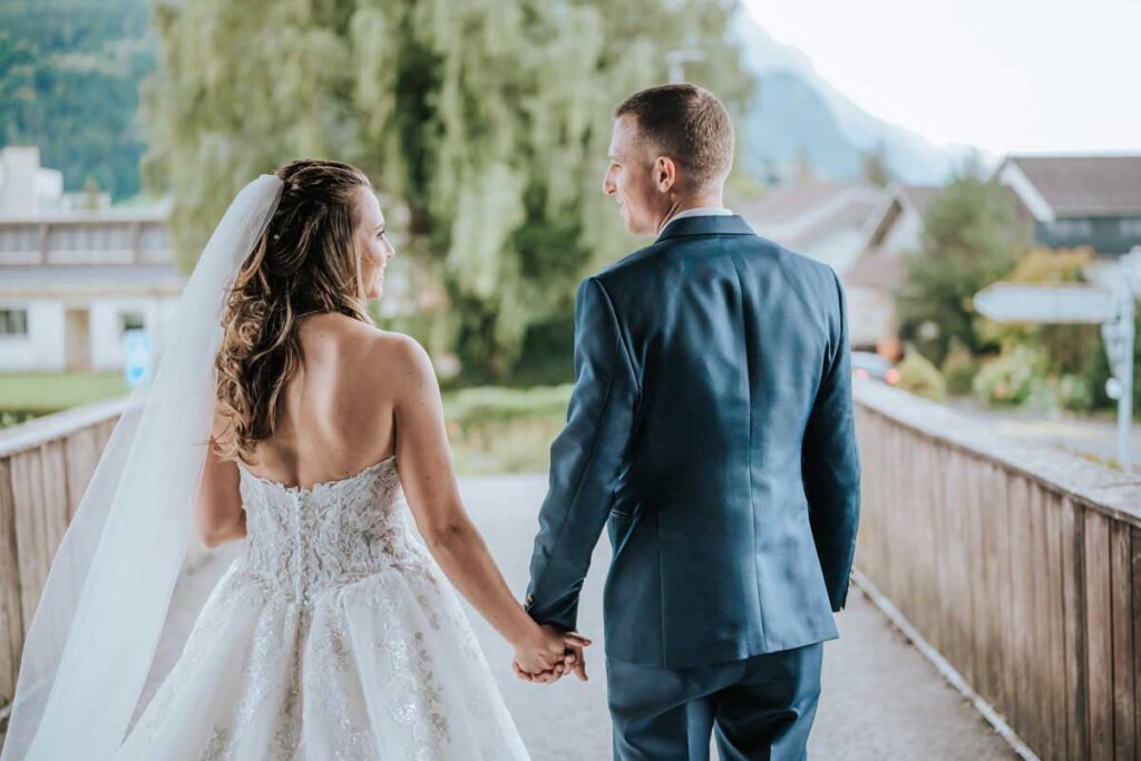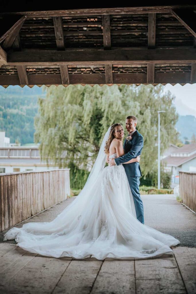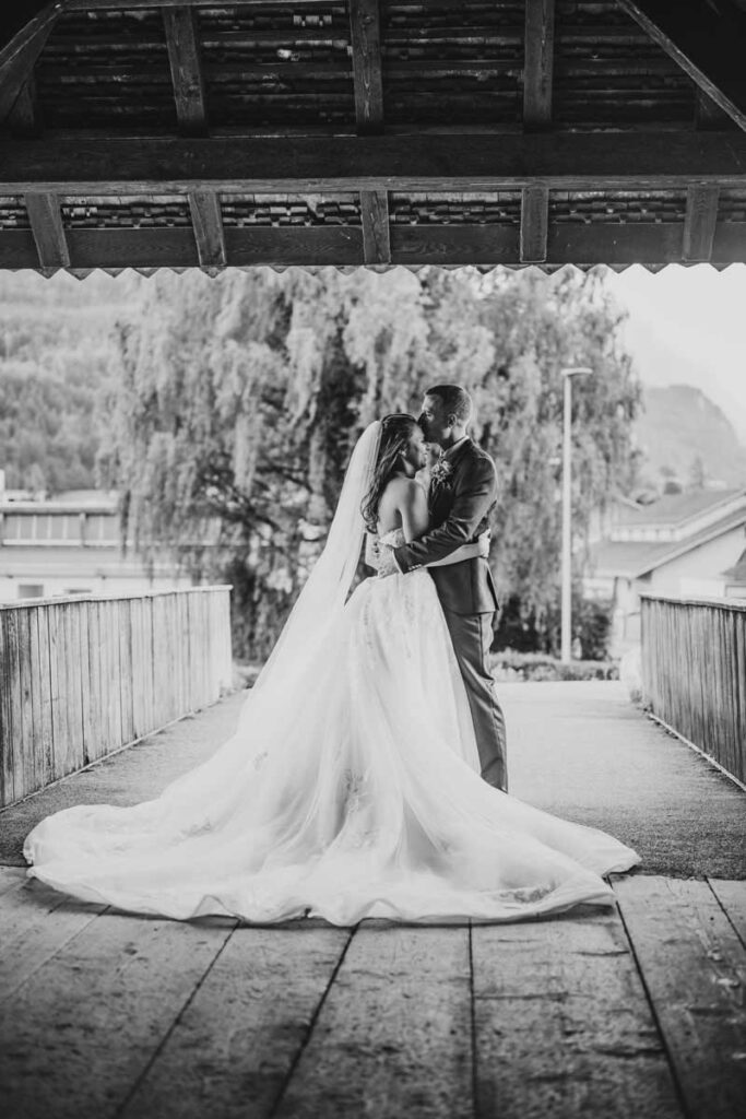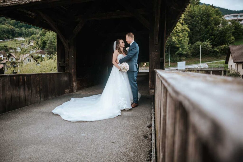 Damaris & Stefan September 2022Brautpaashooting: Wylerbrücke, BrunnenTrauung: Pfarrkirche St. Gallus, MorschachApéro: Bäsebeiz Degenberg, IbachFeier: Waldstätterhof, Brunnen «Liäbi Manu, mit dinere lockerä, offnigä und unkomplizertä Art, hesch du üs de schönschti Tag vom Läbä no schöner gmacht.Dankä vielmal für die wunderschönä Föteli. En besseri Fotografin für üses Hochzit hätemer üs nid chönnä wünschä.»Damaris + Stefan